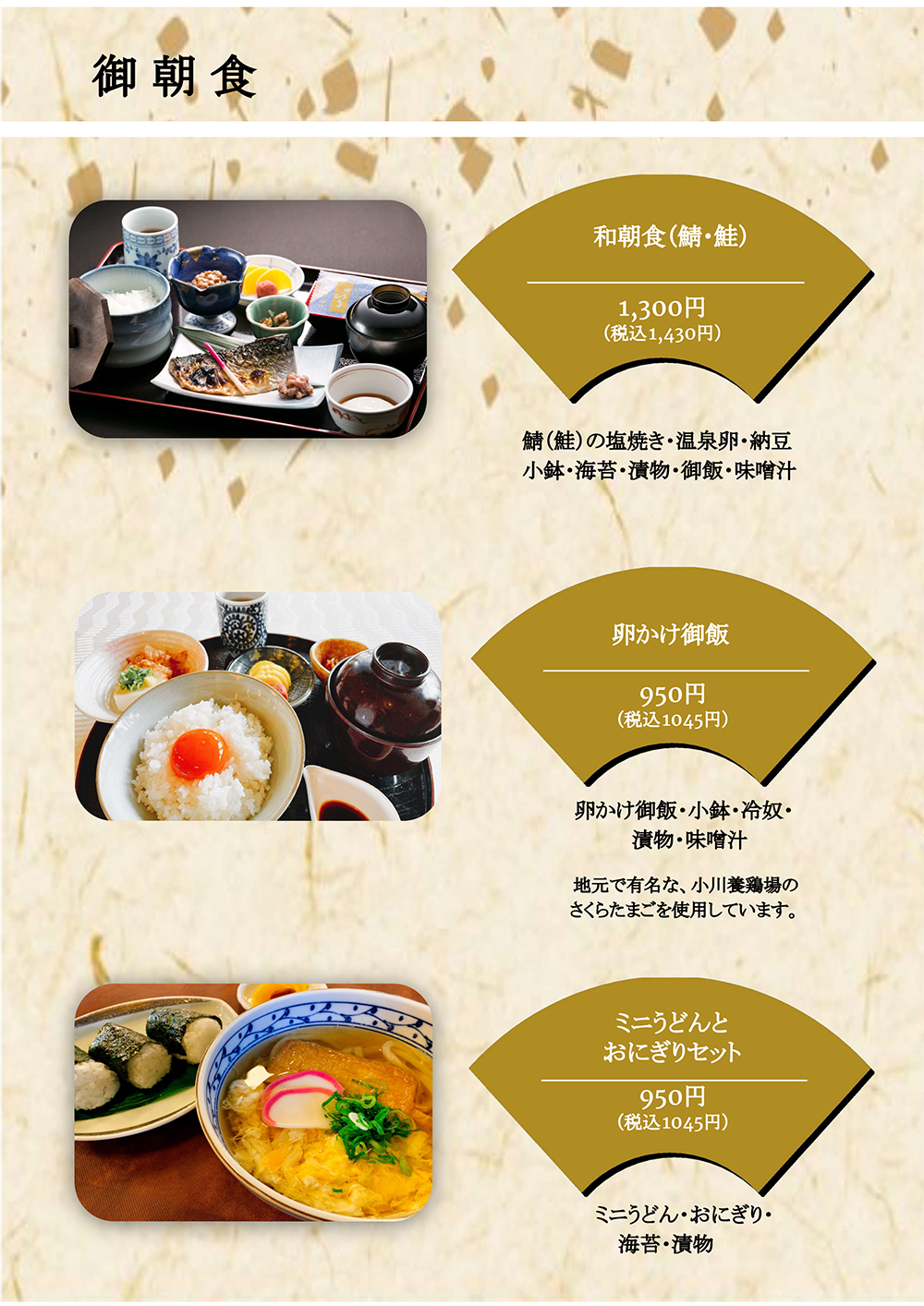 県外からお越しの皆様に人気の朝食も充実、スタート前に是非どうぞ。