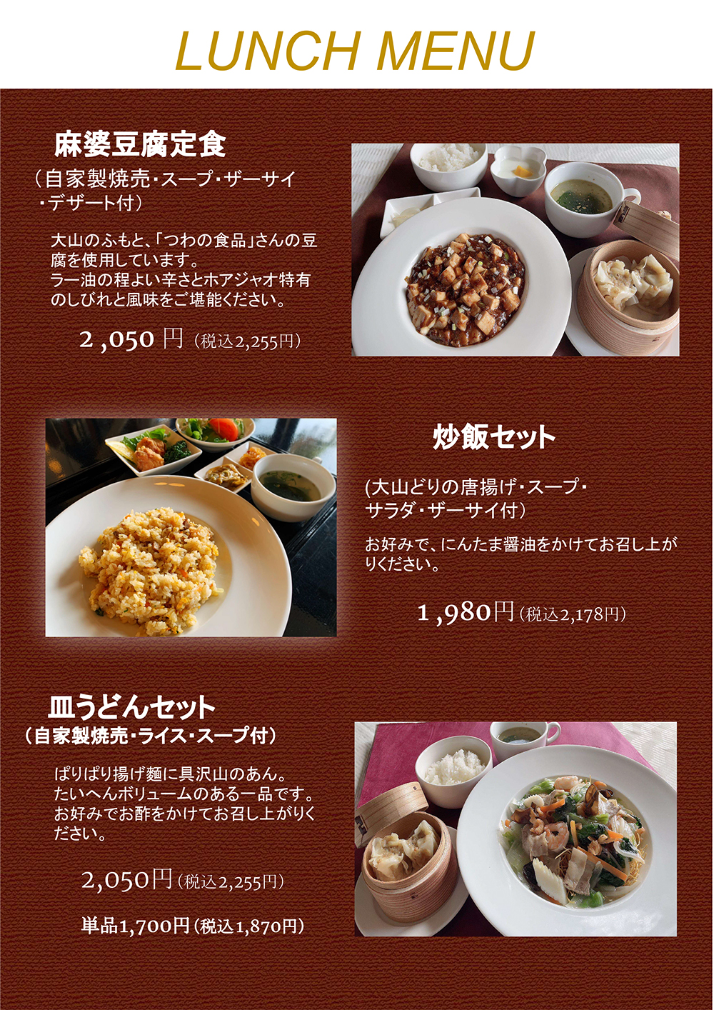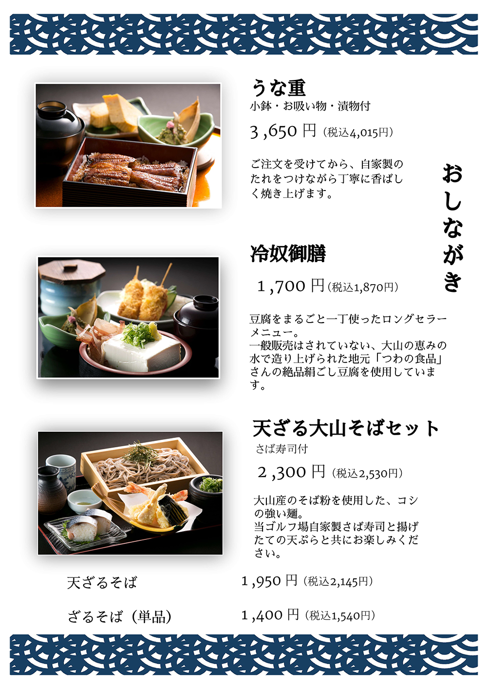 大山の自然に溶け込んだメインダイニングでは、両サイドに大きな窓を配し雄大な大山とコースを眺めながら一流シェフ監修の地元の食材を織り交ぜた多国籍なお食事をお楽しみ下さい。